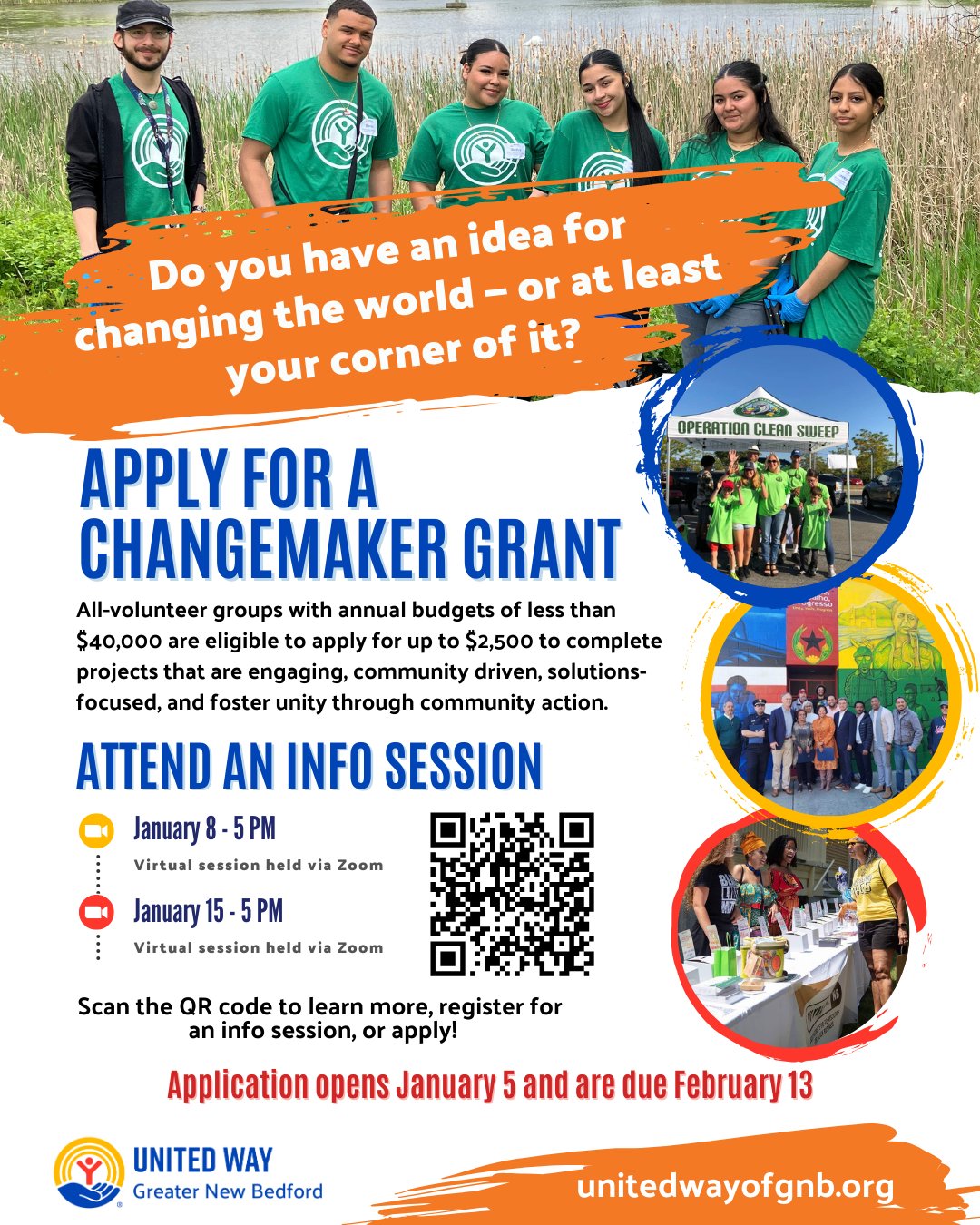United Way of Greater New Bedford is a leader in promoting volunteerism throughout the region. Through Changemaker Grants, all-volunteer groups are empowered to create positive change by identifying needs in their communities. In addition to the grants, Changemaker groups are further supported with skill-building workshops, networking opportunities, and the ability to recruit new volunteers to assist with their projects through Volunteer SouthCoast.